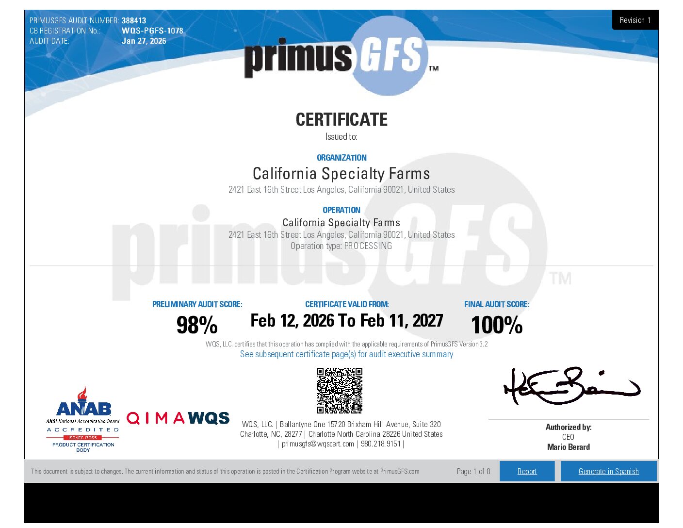 Call Us Today! (323) 587-2200|info@californiaspecialtyfarms.com